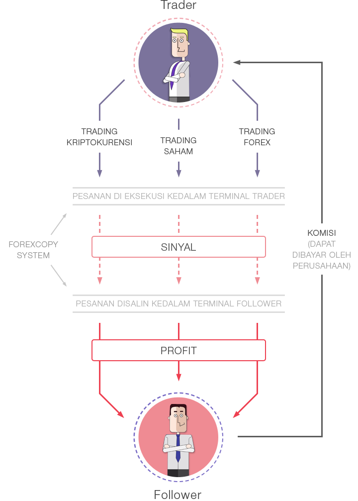 InstaCopy merupakan layanan InstaTrade yang memungkinkan anda untuk menyalin order dari trader sukses bahkan saat anda jauh dari terminal trading anda. Anda hanya memerlukan beberapa menit untuk memilih seorang trader dan menetapkan salinan otomatis dari aktivitas trader yang terpilih. Selain itu, anda memerlukan beberapa menit lainnya untuk menetapkan akun bagi yang lain agar dapat menyalin trading dari anda.