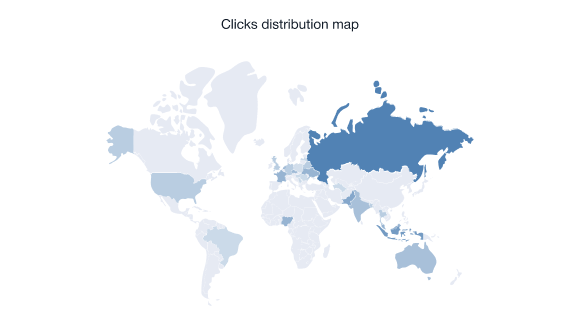 • Statistik distribusi Click menunjukkan negara-negara dengan rating tertinggi dari lalu lintas tautan afiliasi.
