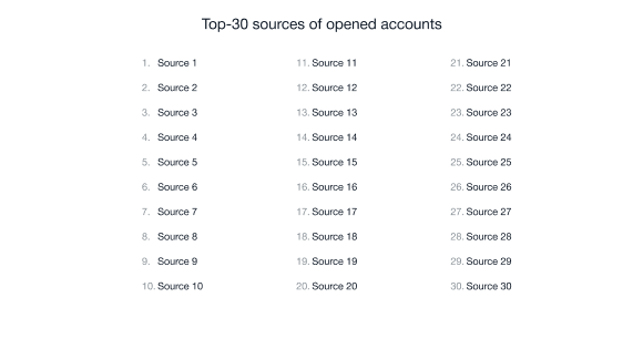 30 sumber teratas dari pembukaan akun