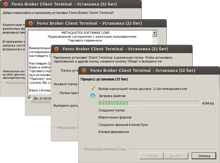 The client terminal installer will be launched. Complete all installation steps: